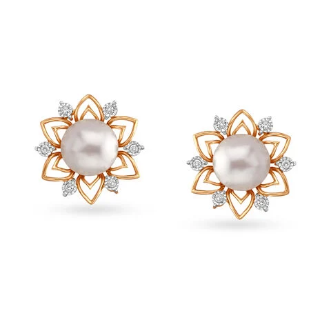 Floral Diamond Stud Ear...