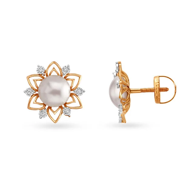Complement your dazzling smile with these Alluring Floral Diamond Stud Earrings with Rock Crystal.