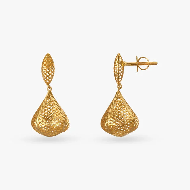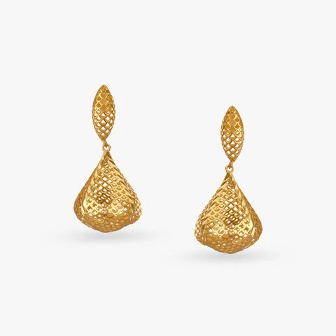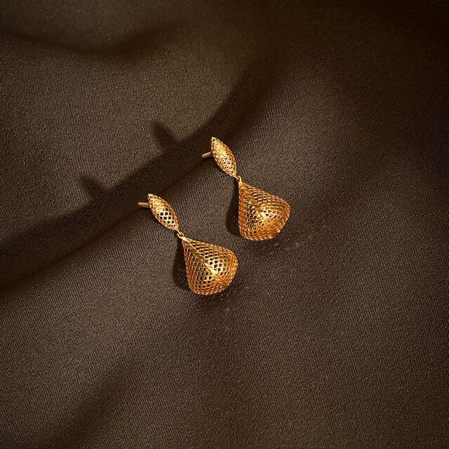 Turn heads with these 22 Karat yellow gold geometric Drop Earrings. Their intricate lattice design brings a modern twist to ethnic elegance.