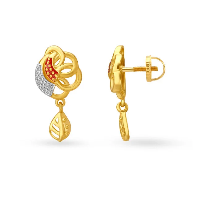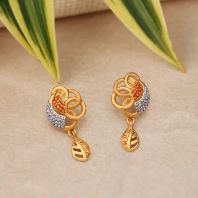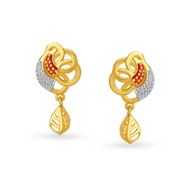 Step up your look by pairing your Modern Wear with these Spectacular Leaf Motif Drop Earrings crafted in 22 Karat Yellow Gold.