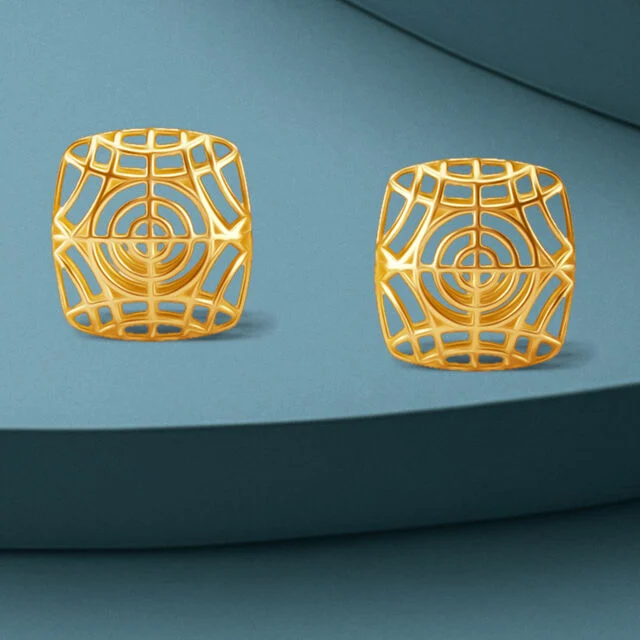 Elevate your style with these 18 Karat yellow gold lattice Stud Earrings, showcasing a dynamic openwork pattern crafted with modern 3D casting.